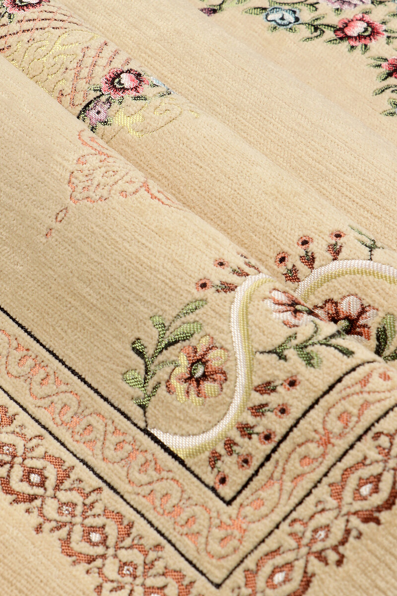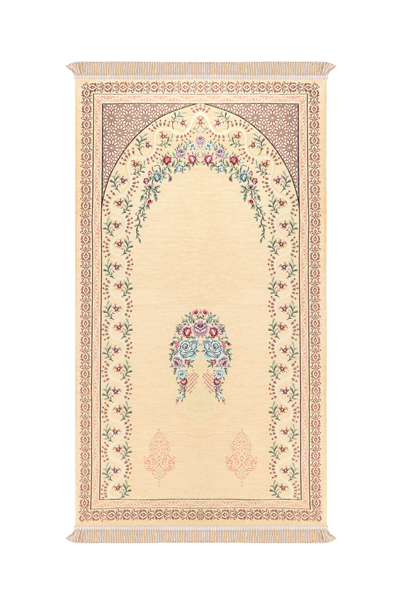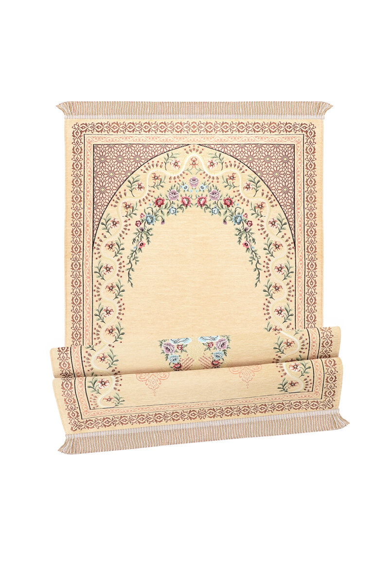 Sarı Sarmaşık Desen Kabartmalı Özel Dokuma Seccade