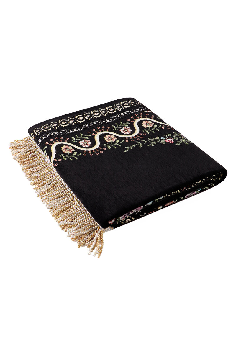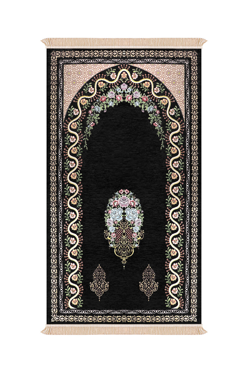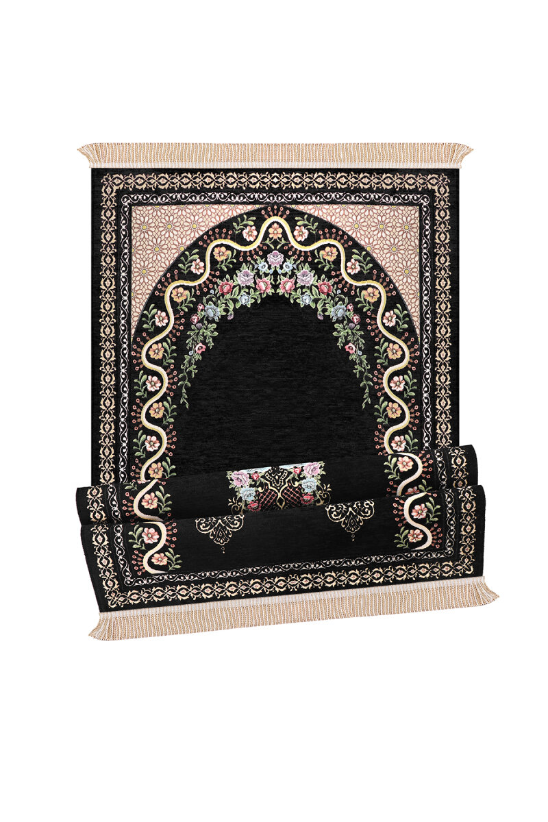 Siyah Sarmaşık Desen Kabartmalı Özel Dokuma Seccade