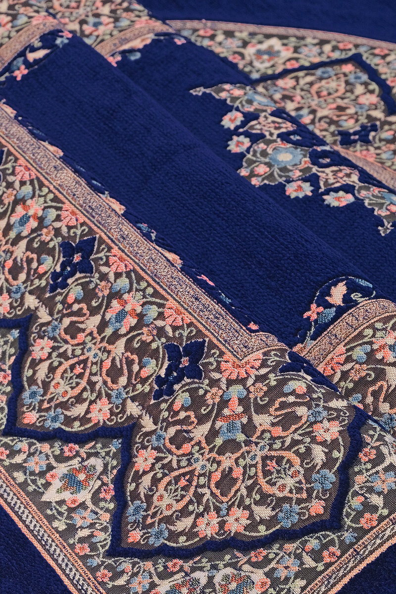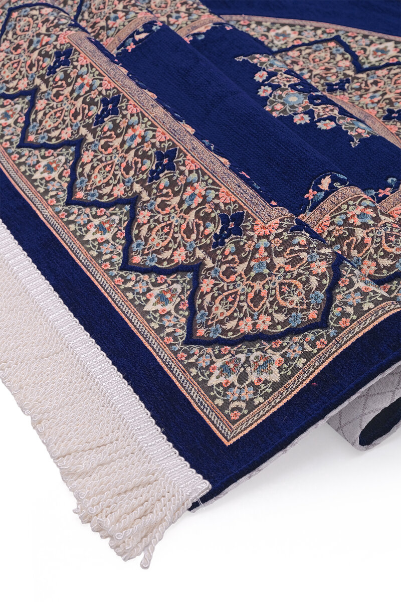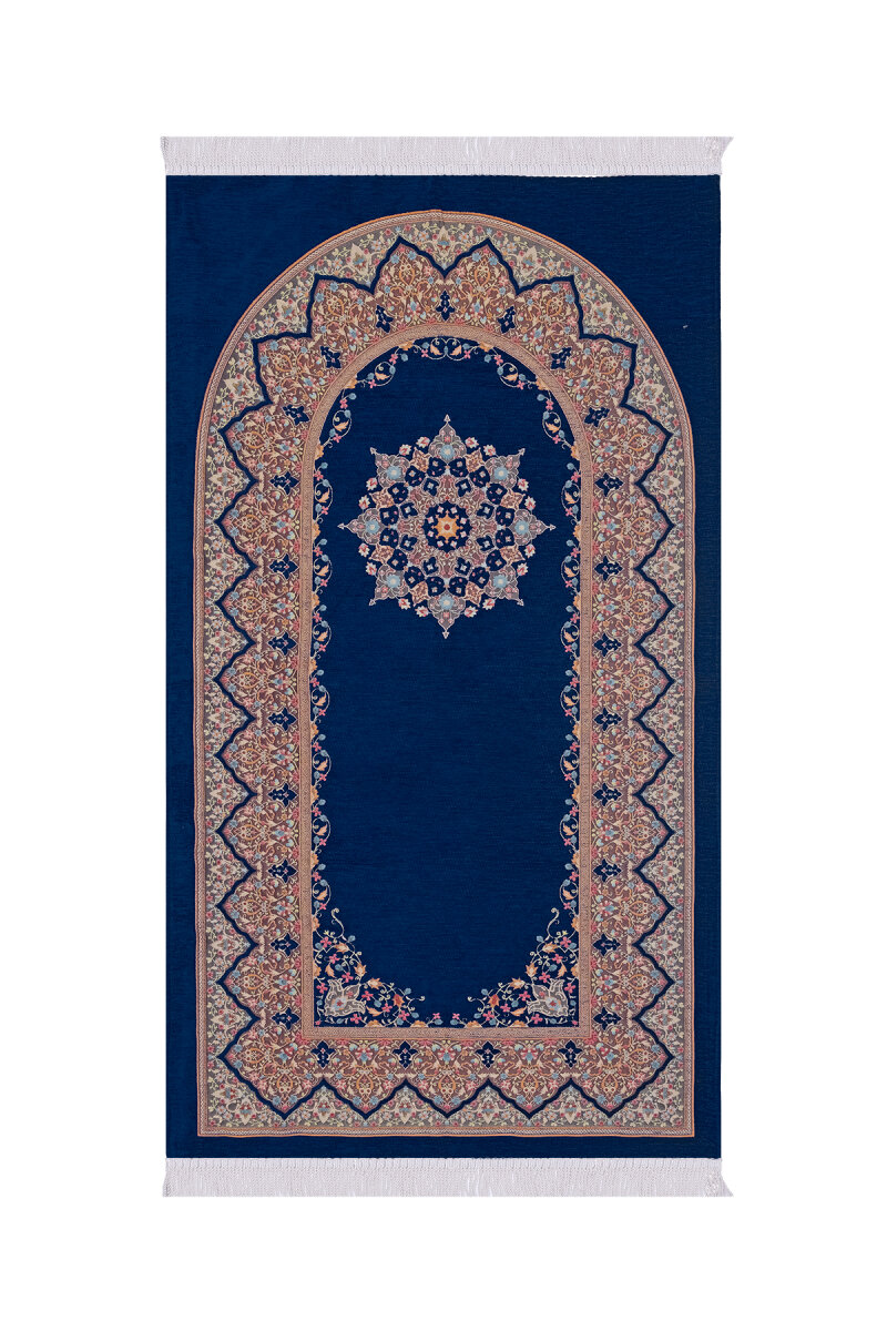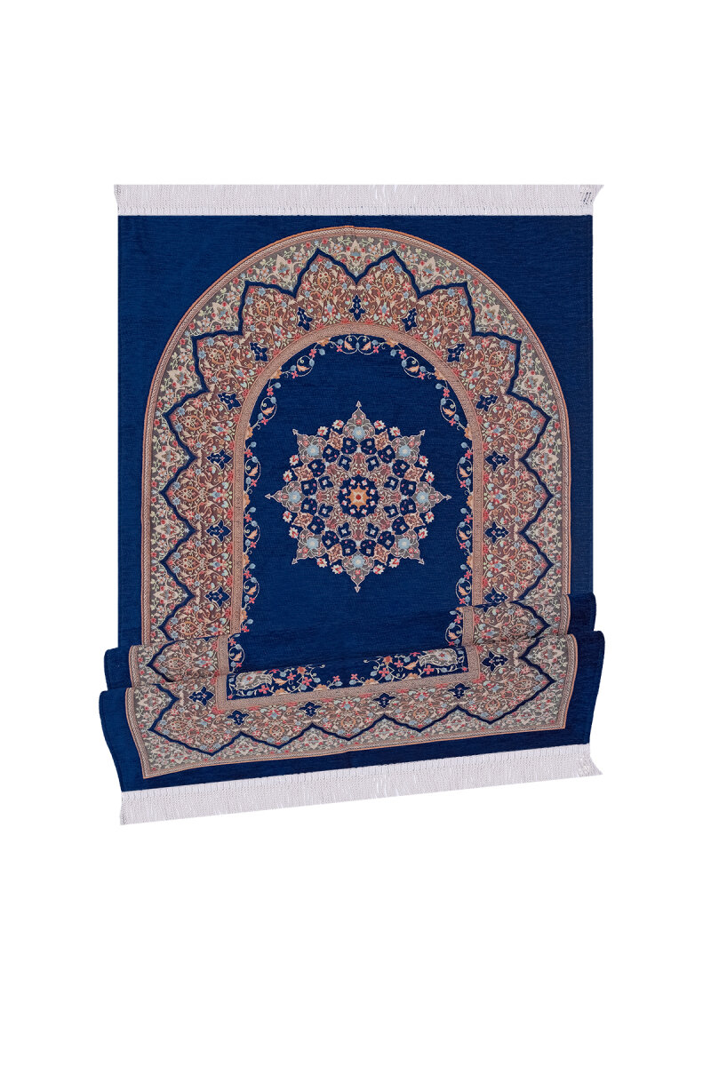 Lacivert Şemse Desen Kabartmalı Özel Dokuma Seccade