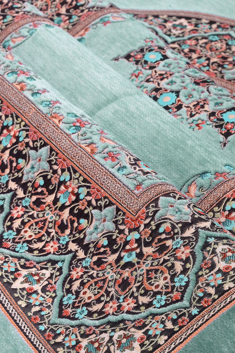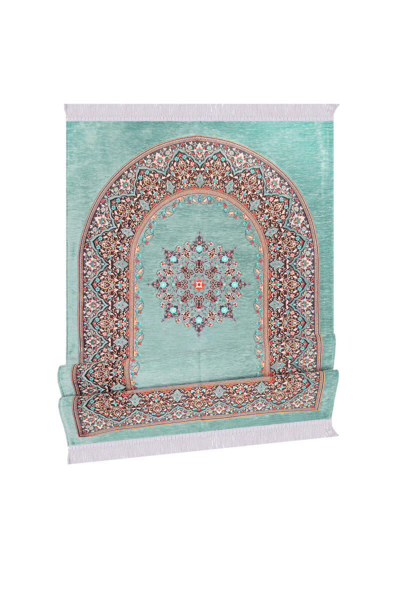 Mint Şemse Desen Kabartmalı Özel Dokuma Seccade