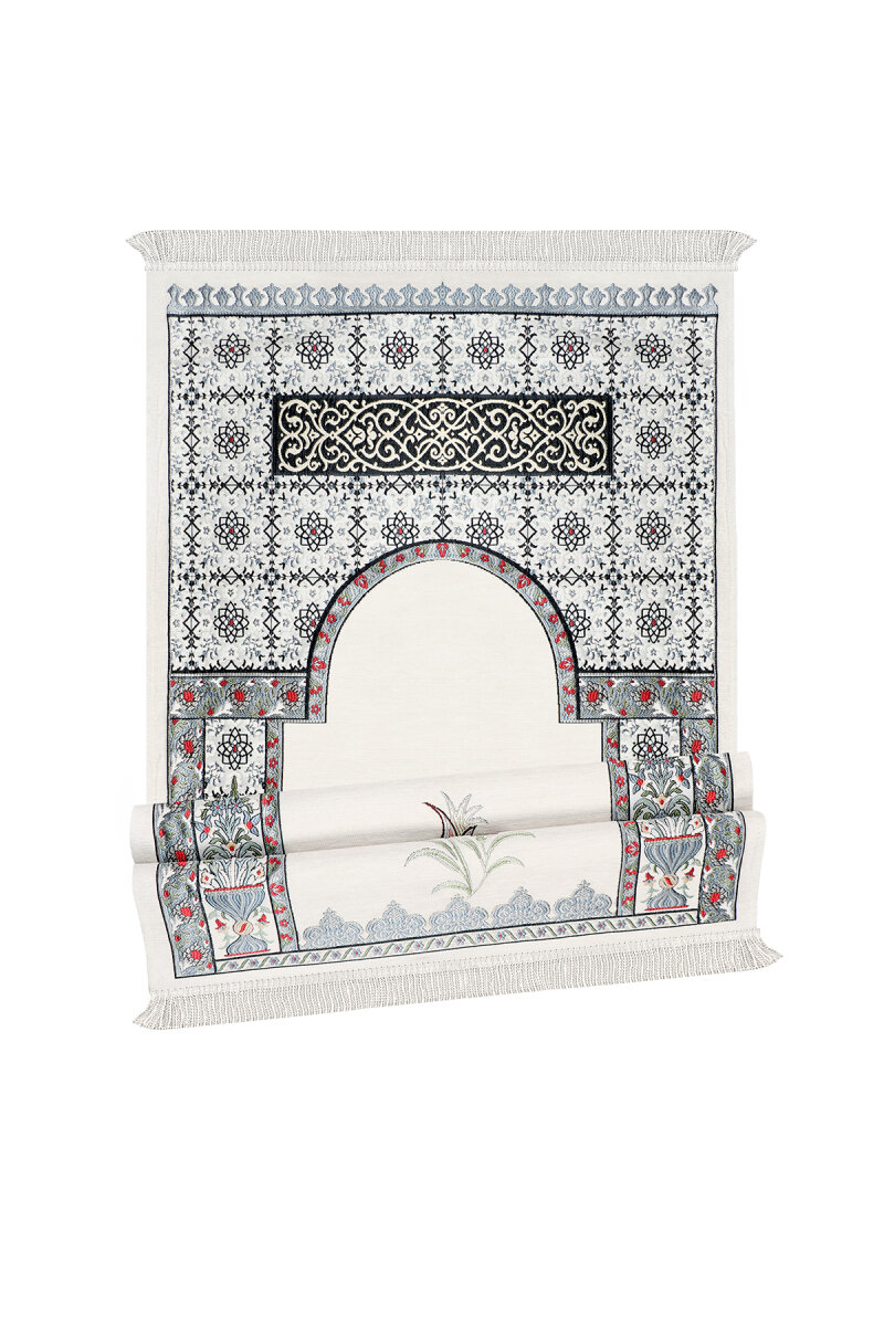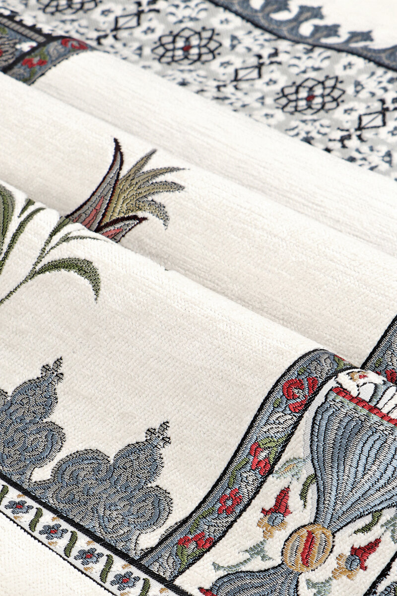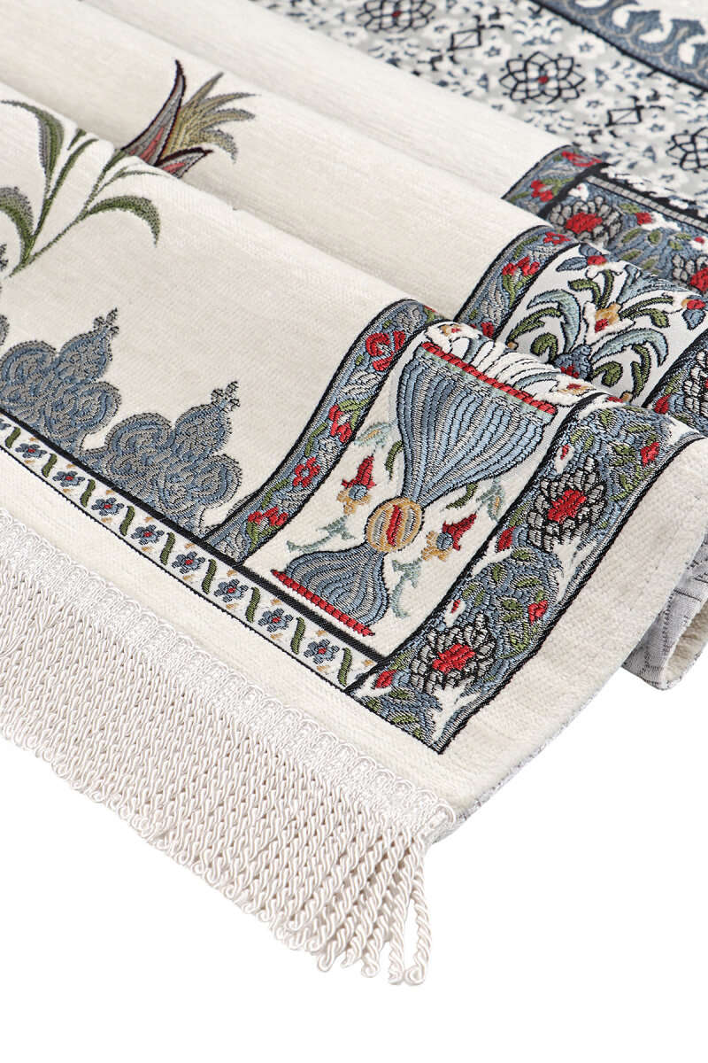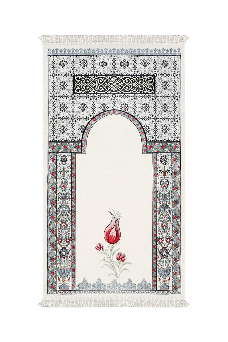 Krem Osmanlı Lale Desen Kabartmalı Özel Dokuma Seccade
