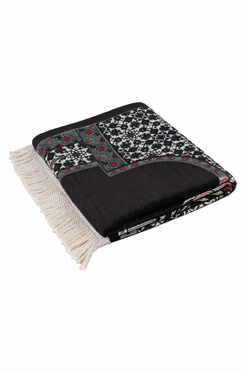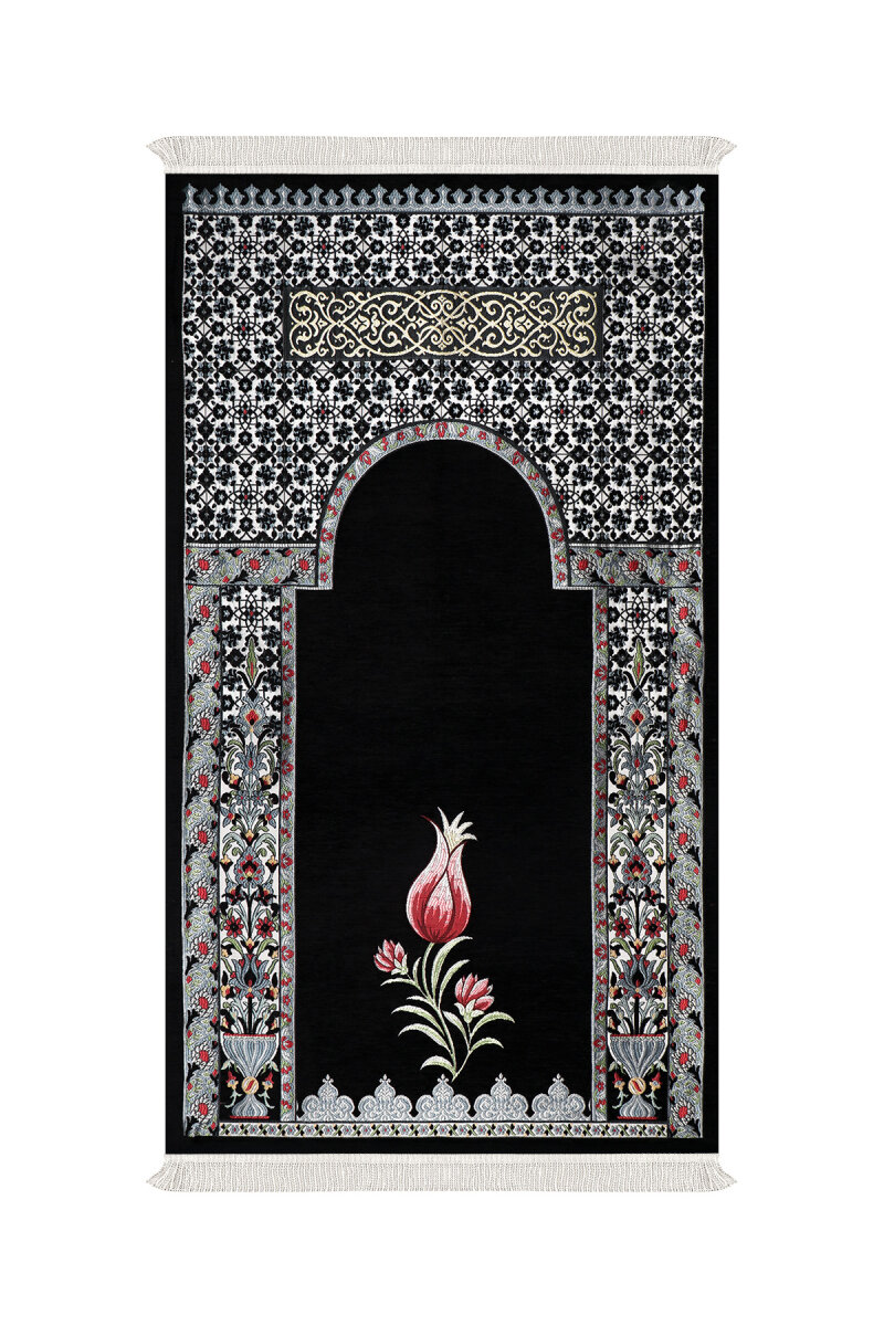 Siyah Osmanlı Lale Desen Kabartmalı Özel Dokuma Seccade