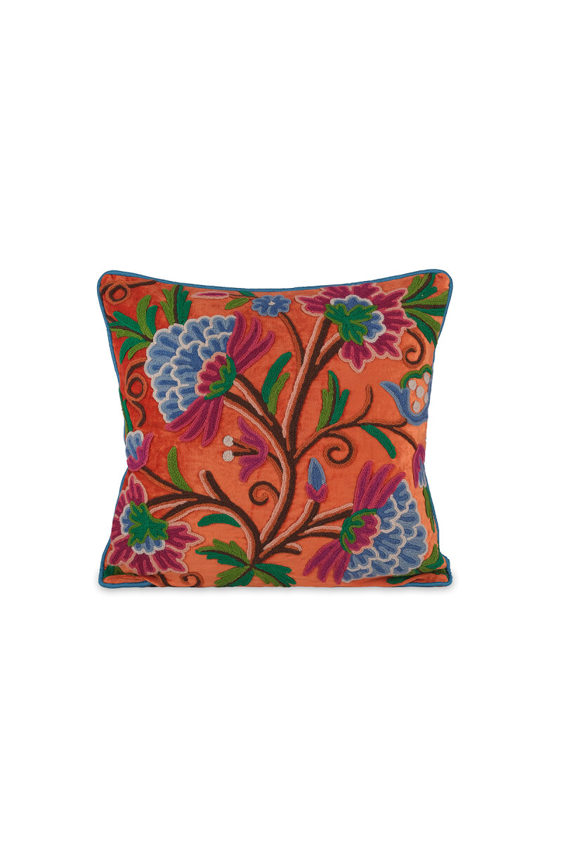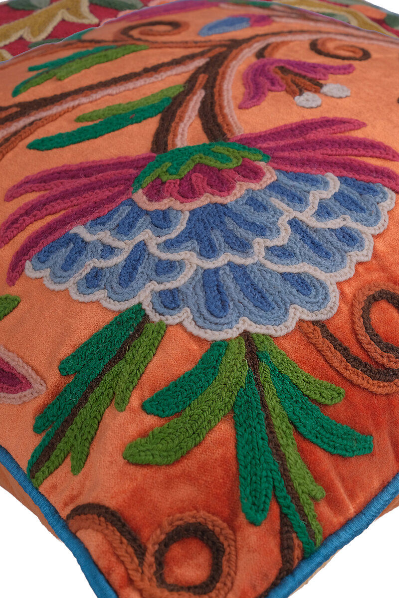Turuncu İşlemeli Kadife Kırlent