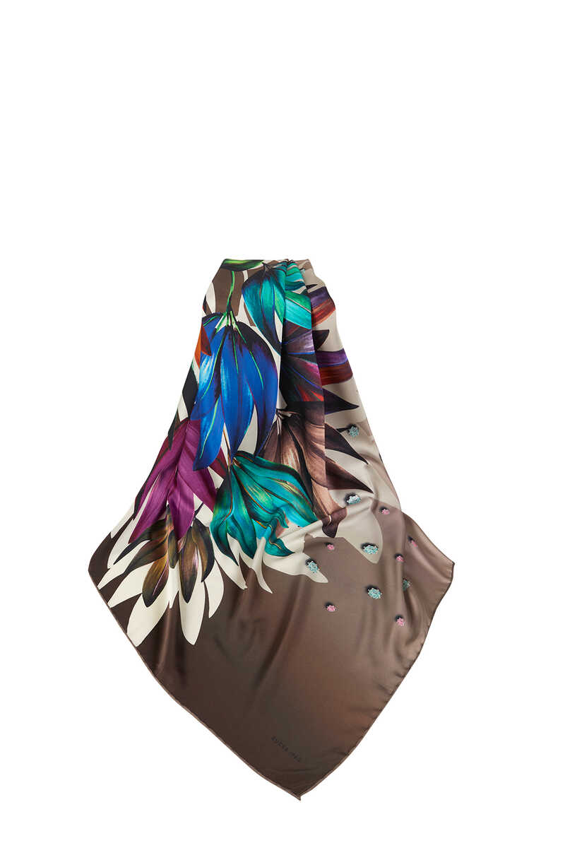 Kahverengi Pırlanta desenlerinin ipeksi kumaş dokusu ile parlak ve canlı renklerle bir araya geldiği eğlenceli ve aynı zamanda klasik bir seçim… Desenlerin ipeksi dokuya büründüğü halleri ile hayata enerji katın! Ürünümüz: %100 ipeksi rayon kumaşı, 90x90 cm boyutlarıyla kullanım kolaylığı sunuyor.