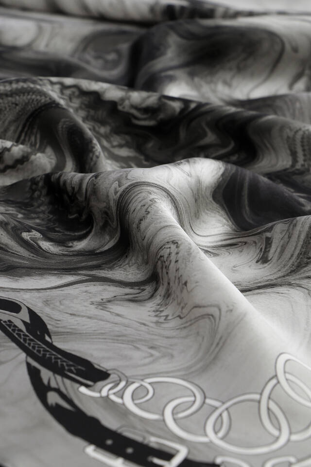 With the Gray Belt Pattern Sura Silk Square Scarf reflected in the unique elegance of silk, you will feel the atmosphere of integrity in different beauty. Our product; It offers ease of use with its 100% silk content and dimensions of 90x90cm.