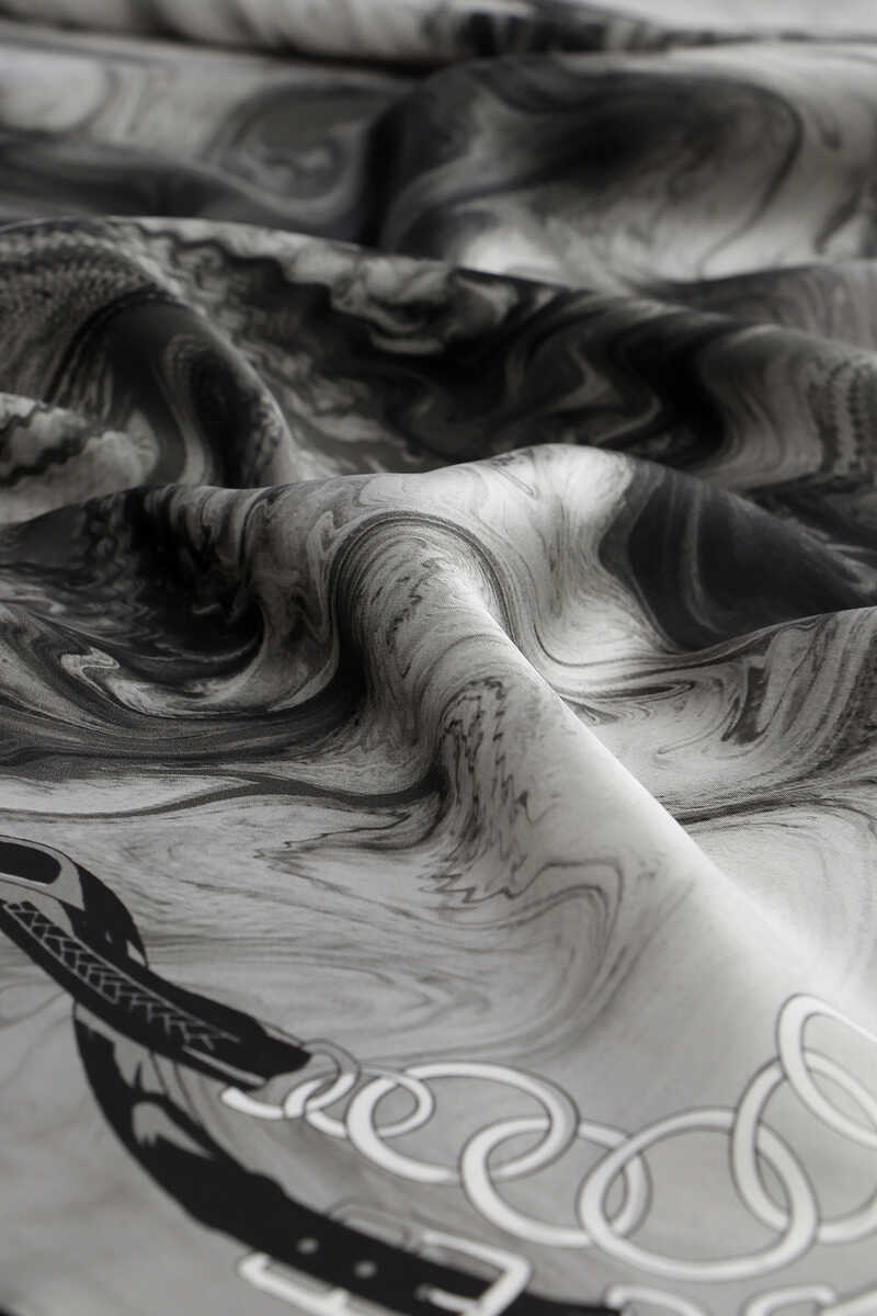 İpeğin eşsiz zarafetine yansıtılmış Gri Kemer Desen Sura İpek Eşarp ile sizler de farklı güzellikteki bütünlüğün atmosferini hissedeceksiniz. Ürünümüz; %100 İpek içeriği ile 90x90cm boyutlarıyla kullanım rahatlığı sunuyor.