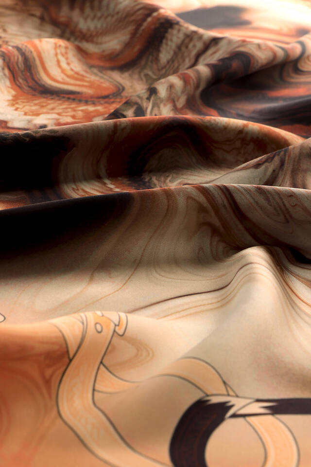 With the Dark Salmon Belt Pattern Sura Silk Square Scarf reflected in the unique elegance of silk, you will feel the atmosphere of integrity in different beauty. Our product; It offers ease of use with its 100% silk content and dimensions of 90x90cm.