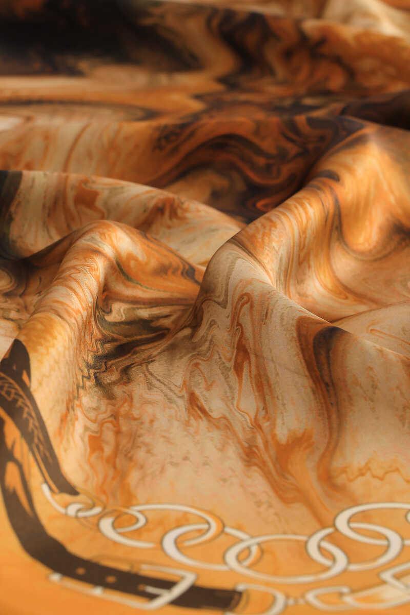 İpeğin eşsiz zarafetine yansıtılmış Turuncu Kemer Desen Sura İpek Eşarp ile sizler de farklı güzellikteki bütünlüğün atmosferini hissedeceksiniz. Ürünümüz; %100 İpek içeriği ile 90x90cm boyutlarıyla kullanım rahatlığı sunuyor.