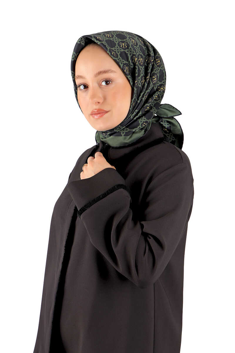 You will feel the atmosphere of integrity in different beauty with the Khaki Chain Monogram Twill Silk Square Scarf reflected in the unique elegance of silk. Our product; It offers ease of use with its 100% silk content and dimensions of 90x90cm.