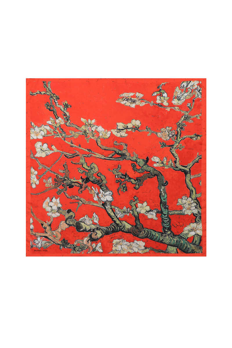 Kırmızı Badem Çiçeği Desen İpeksi Mendil