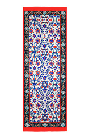 Red Navy Blue Selcuk Pattern Silk Foulard