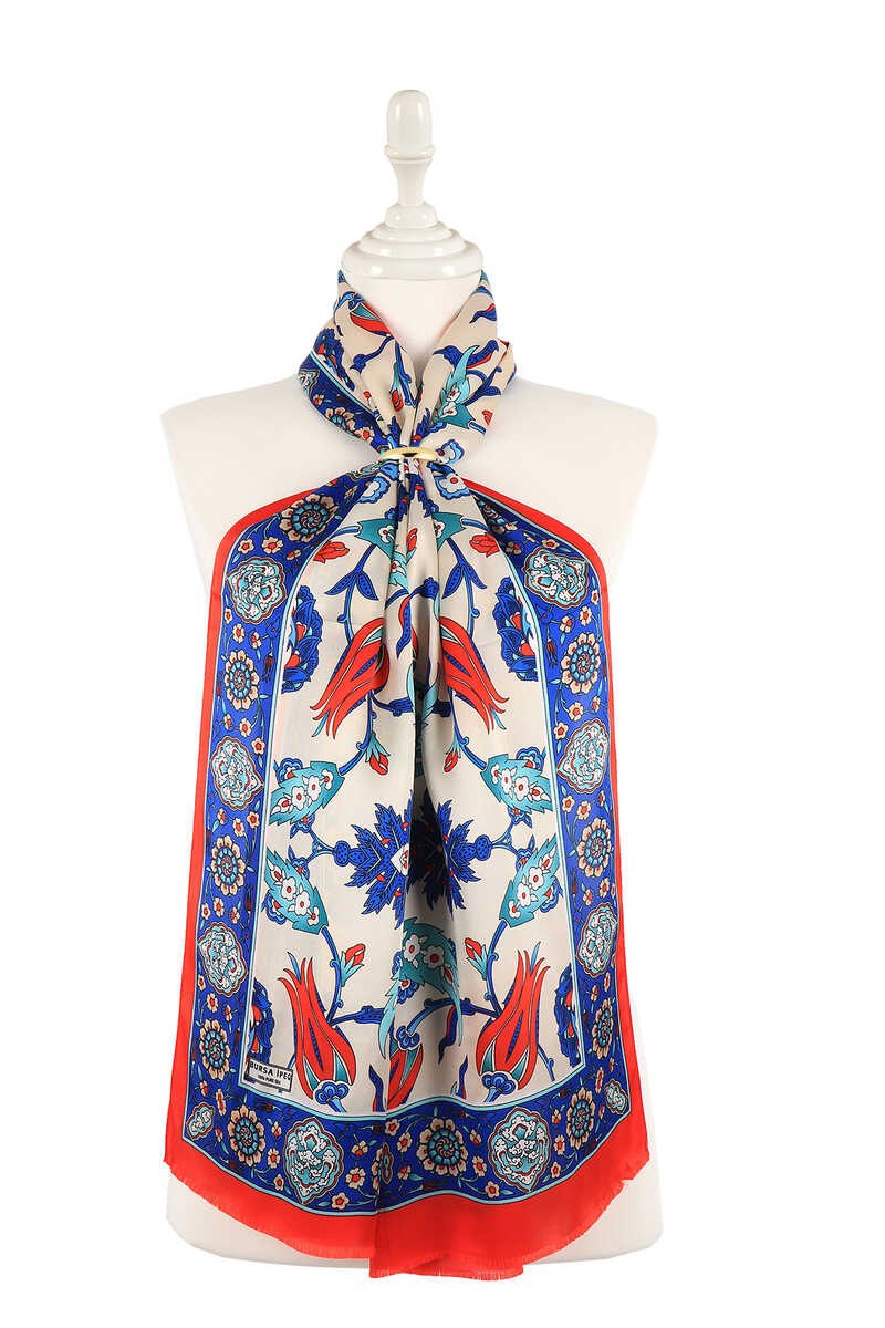 Şıklığınıza şıklık katarken, en ciddi iş toplantısından en zarif sanat galerisine kadar stilinizi tamamlayacak özel bir model. Göz alıcı desenlere sahip Kırmızı Saks renkli Efes Desen İpek Fular modelimiz, %100 ipek içeriği, 55x160cm boyutlarıyla kullanım kolaylığı sunuyor.