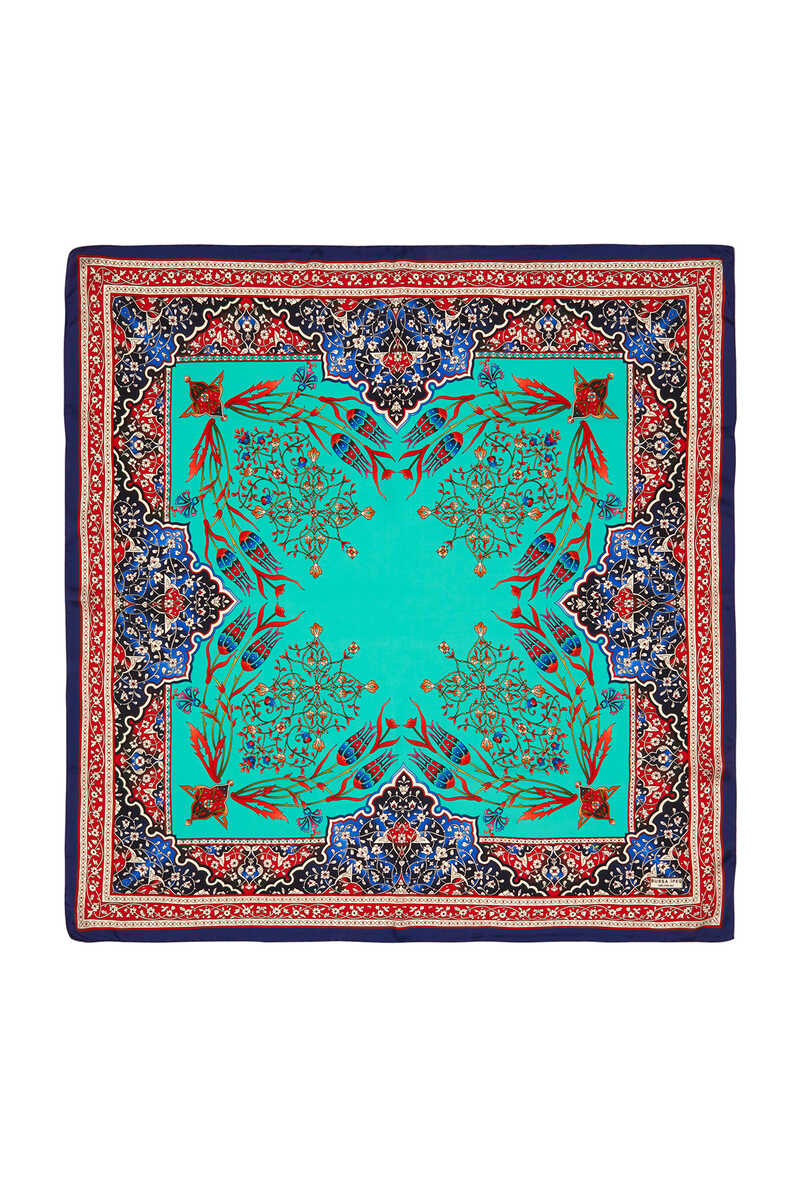 Kırmızı Saks renkli Şamdan Lale deseninin ipek kumaş dokusu ile parlak ve canlı renklerle bir araya geldiği eğlenceli ve aynı zamanda klasik bir seçim… Çiçeklerin ipeğe büründüğü halleri ile hayata enerji katın! Ürünümüz: %100 İpek kumaşı, 90x90cm boyutlarıyla kullanım kolaylığı sunuyor.