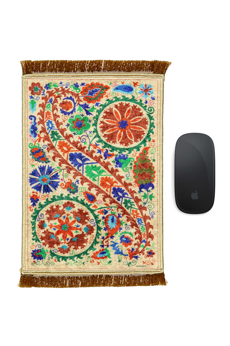 İpeksi dokusu, göz alıcı renkleri ile Türk motifli ve Çini desenli mouse pad ve dekor halısı modellerimiz dekoratif bir görünüm sunarken kadife dokusu 20 x 28 cm ebatları ile rahat kullanımınız için özel olarak tasarlanmıştır.