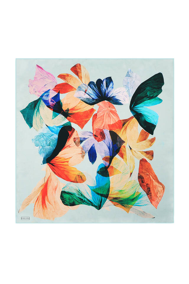 Asit Yeşil Süsen Desen Twill İpek Eşarp