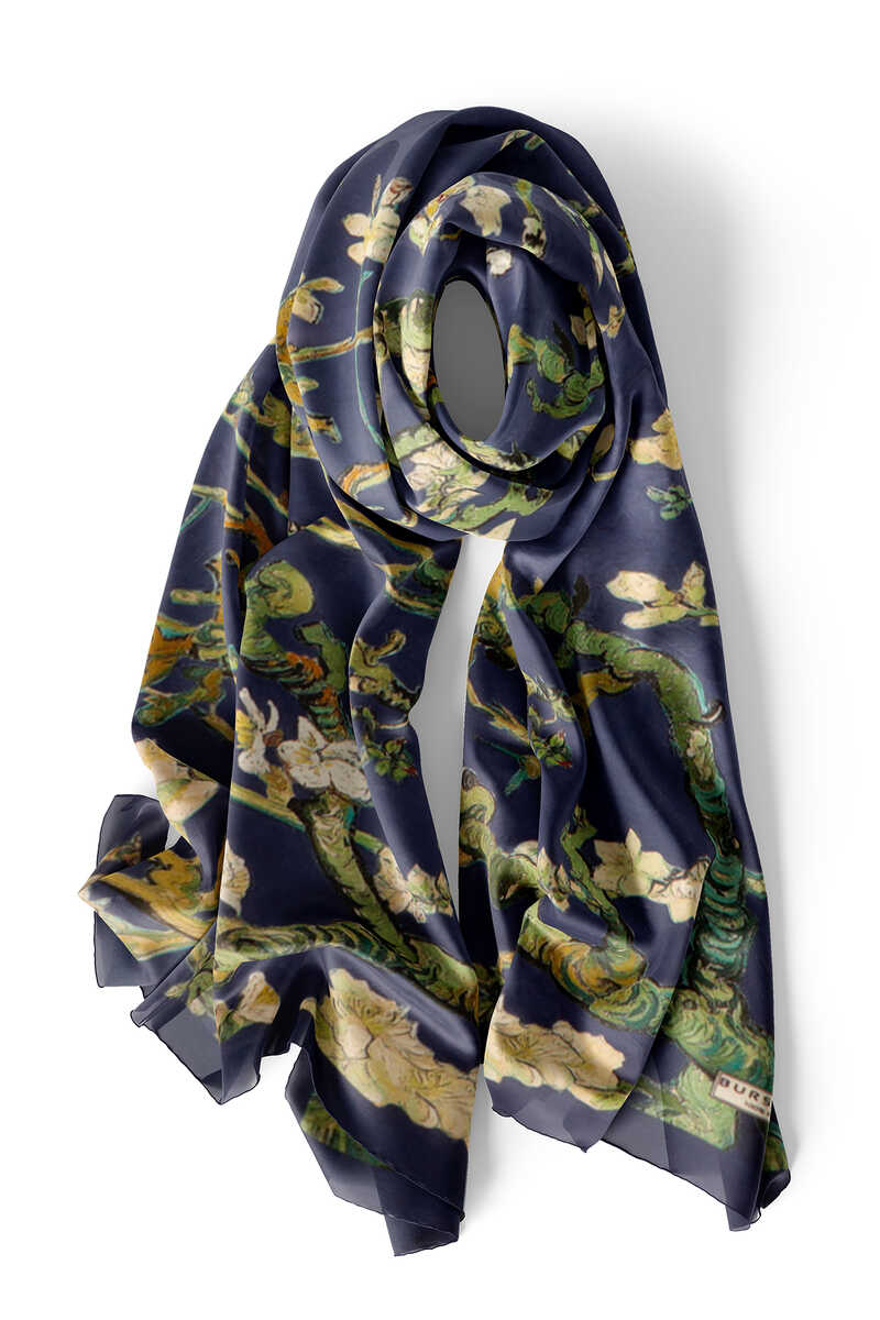 Şıklığınıza şıklık katarken, en ciddi iş toplantısından en zarif sanat galerisine kadar stilinizi tamamlayacak özel bir model. Göz alıcı desenlere sahip Lacivert renkli Badem Çiçeği İpek Fular modelimiz, %100 ipek içeriği, 45x165cm boyutlarıyla kullanım kolaylığı sunuyor.