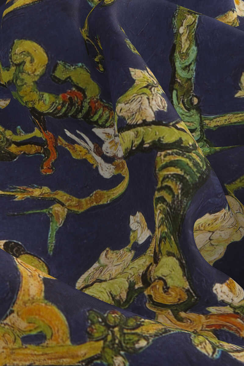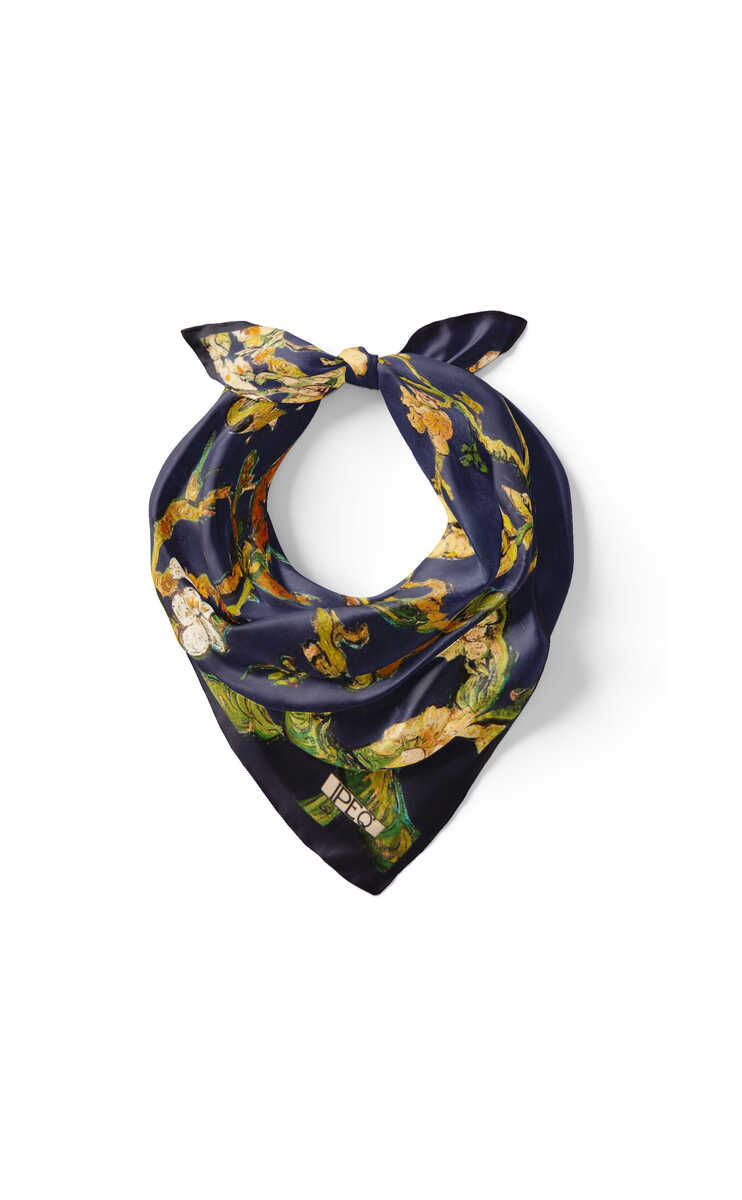 İpeğin eşsiz zarafetine yansıtılmış Lacivert renkli badem çiçeği desenleri ile sizler de farklı güzellikteki bütünlüğün atmosferini hissedeceksiniz. Ürünümüz; %100 İpek içeriği ile 55x55cm boyutlarıyla kullanım rahatlığı sunuyor.