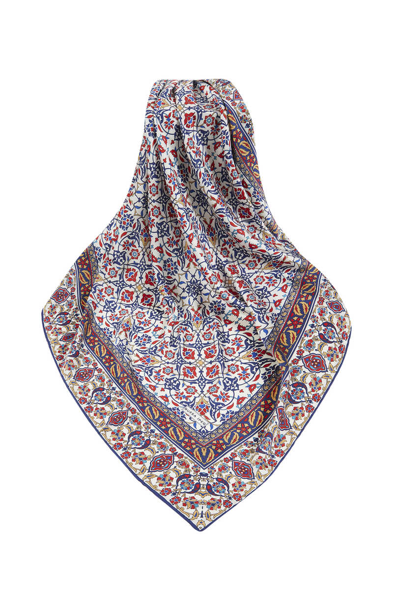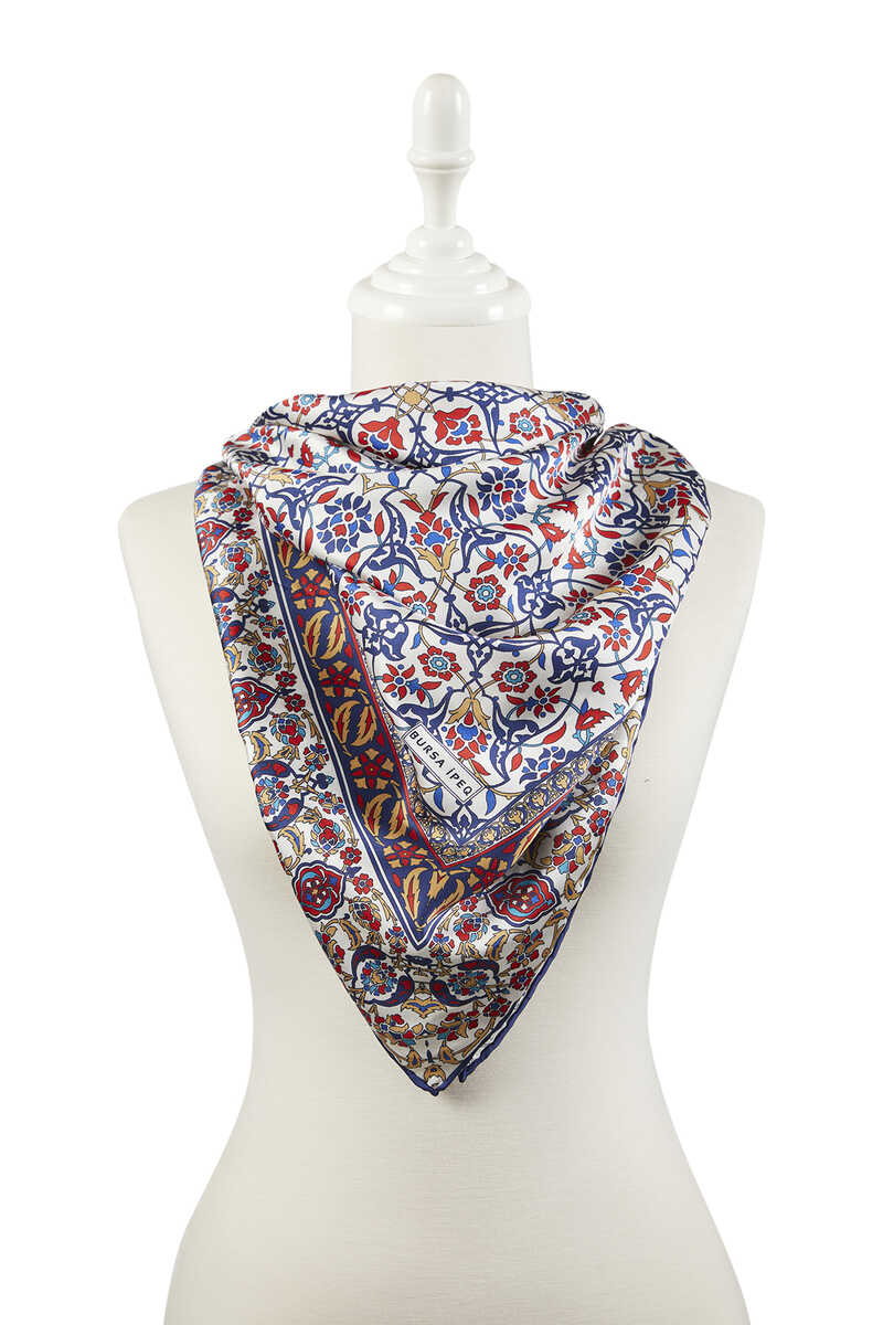 Lacivert Hardal Çini desenlerinin ipeksi kumaş dokusu ile parlak ve canlı renklerle bir araya geldiği eğlenceli ve aynı zamanda klasik bir seçim… Çiçeklerin ipeksi dokuya büründüğü halleri ile hayata enerji katın! Ürünümüz: %100 ipeksi rayon kumaşı, 90x90 cm boyutlarıyla kullanım kolaylığı sunuyor.