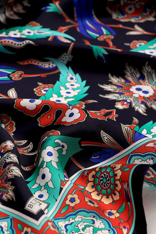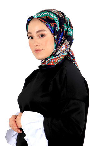 You will feel the atmosphere of integrity in different beauty with the Dark Blue Red Ephesus Pattern Sura Silk Square Scarf, reflected in the unique elegance of silk. Our product; It offers ease of use with its 100% silk content and dimensions of 90x90cm.
