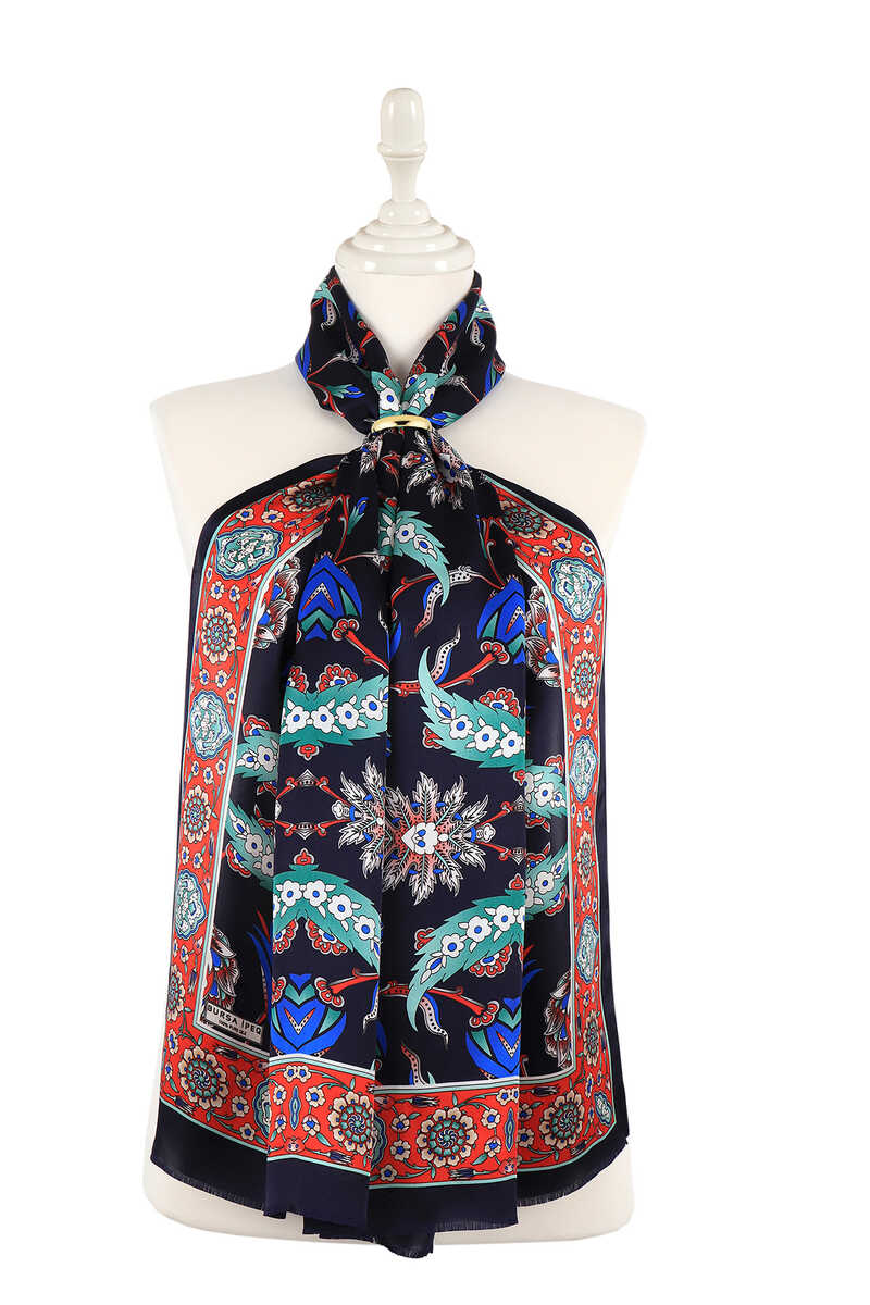 نموذج خاص يضيف الأناقة إلى أسلوبك ويكمل أسلوبك من اجتماع العمل الأكثر جدية إلى المعرض الفني الأكثر أناقة. يوفر موديل Efes Pattern Silk Foulard باللون الأزرق الداكن والأحمر مع أنماط لافتة للنظر سهولة الاستخدام بمحتواه الحريري بنسبة 100% وأبعاد 55 × 160 سم.