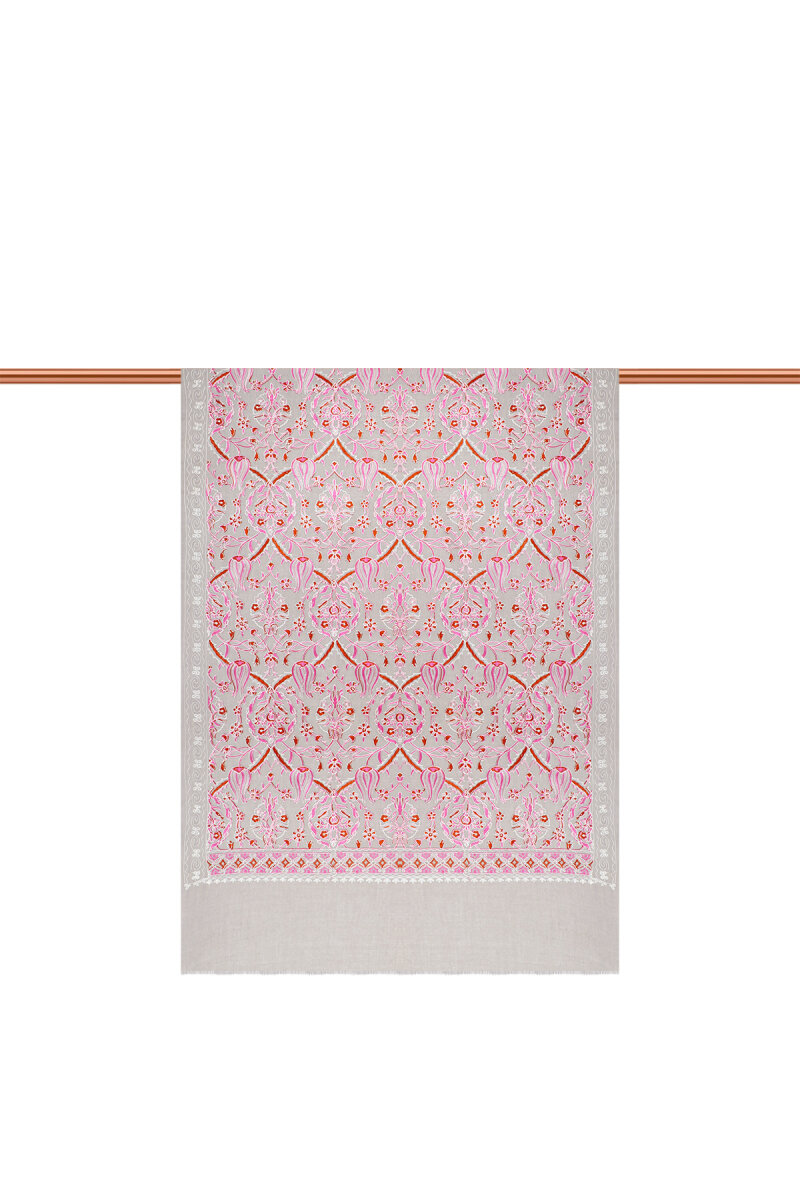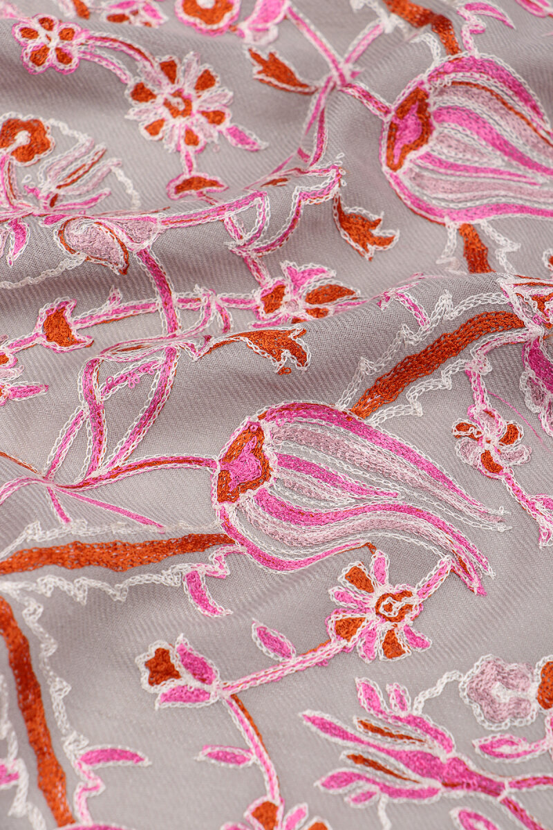 Gray Pink Tulip Pattern Embroidered Wool Shawl