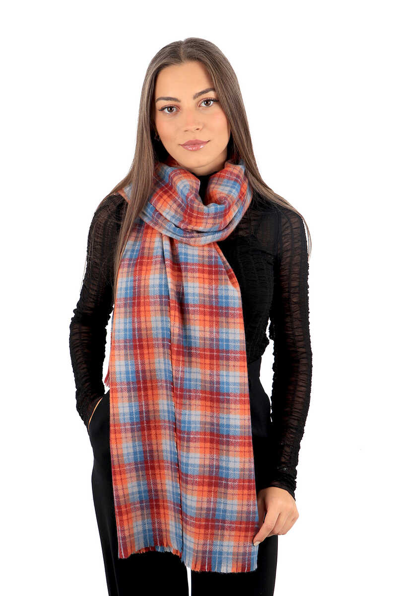 Mavi Bordo Ekose Desen Kışlık Şal