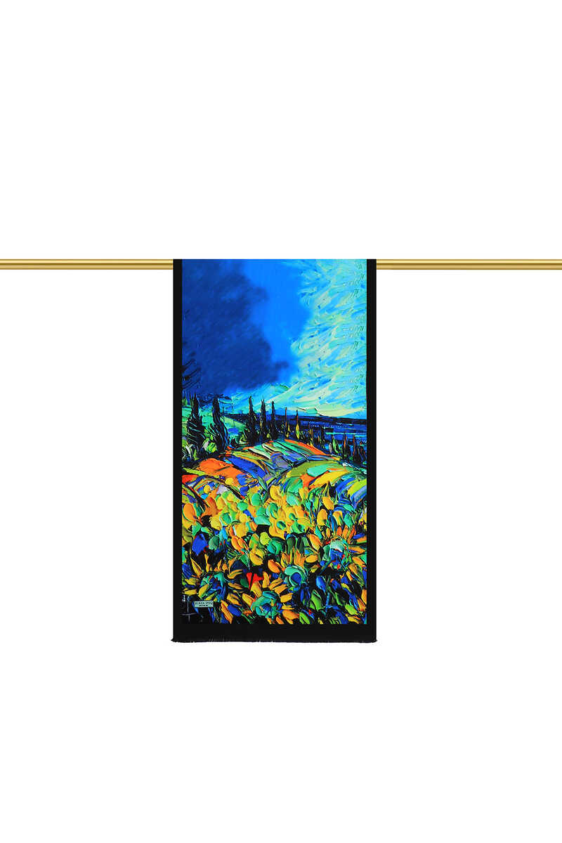 Şıklığınıza şıklık katarken, en ciddi iş toplantısından en zarif sanat galerisine kadar stilinizi tamamlayacak özel bir model. Göz alıcı desenlere sahip Mavi Gün Çiçekleri Desen İpek Fular modelimiz, %100 ipek içeriği, 45x160cm boyutlarıyla kullanım kolaylığı sunuyor.