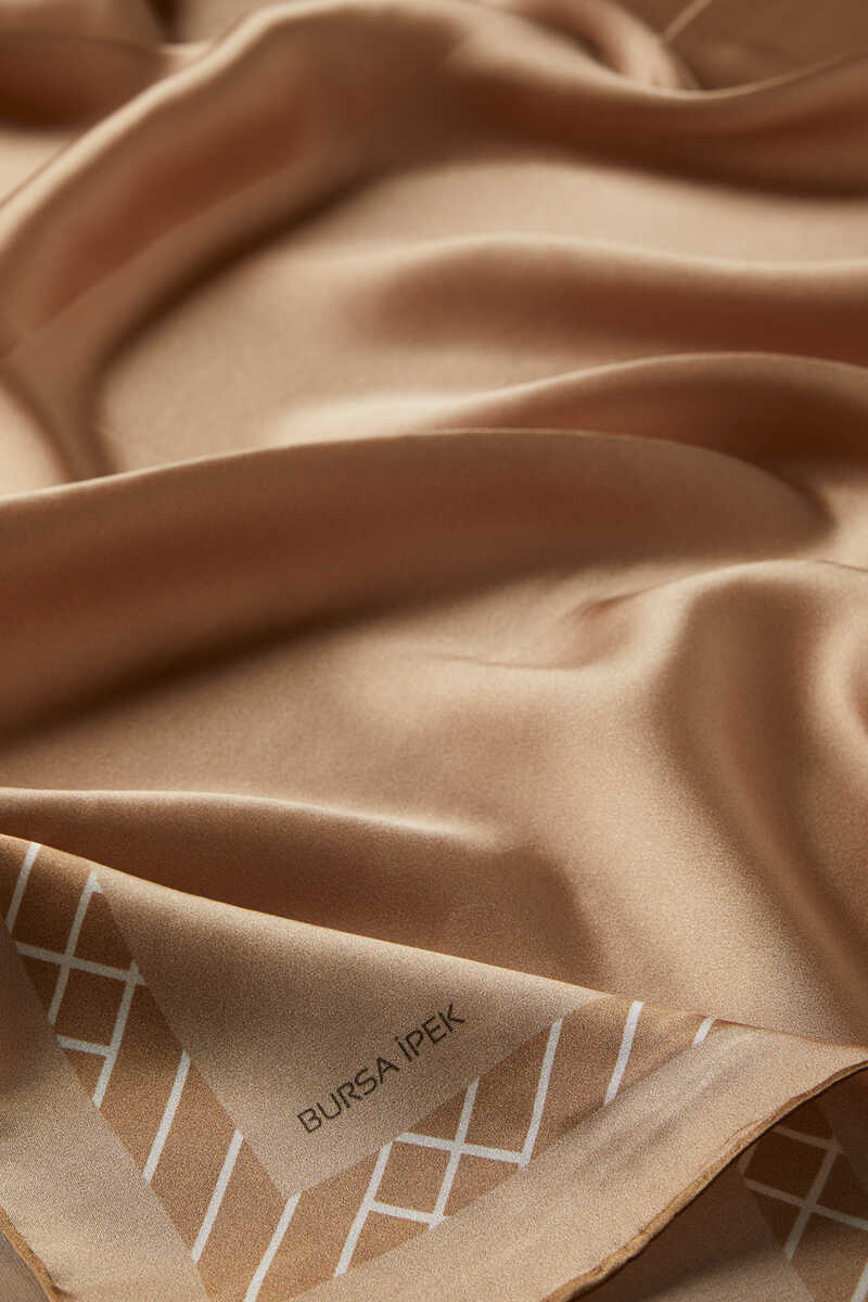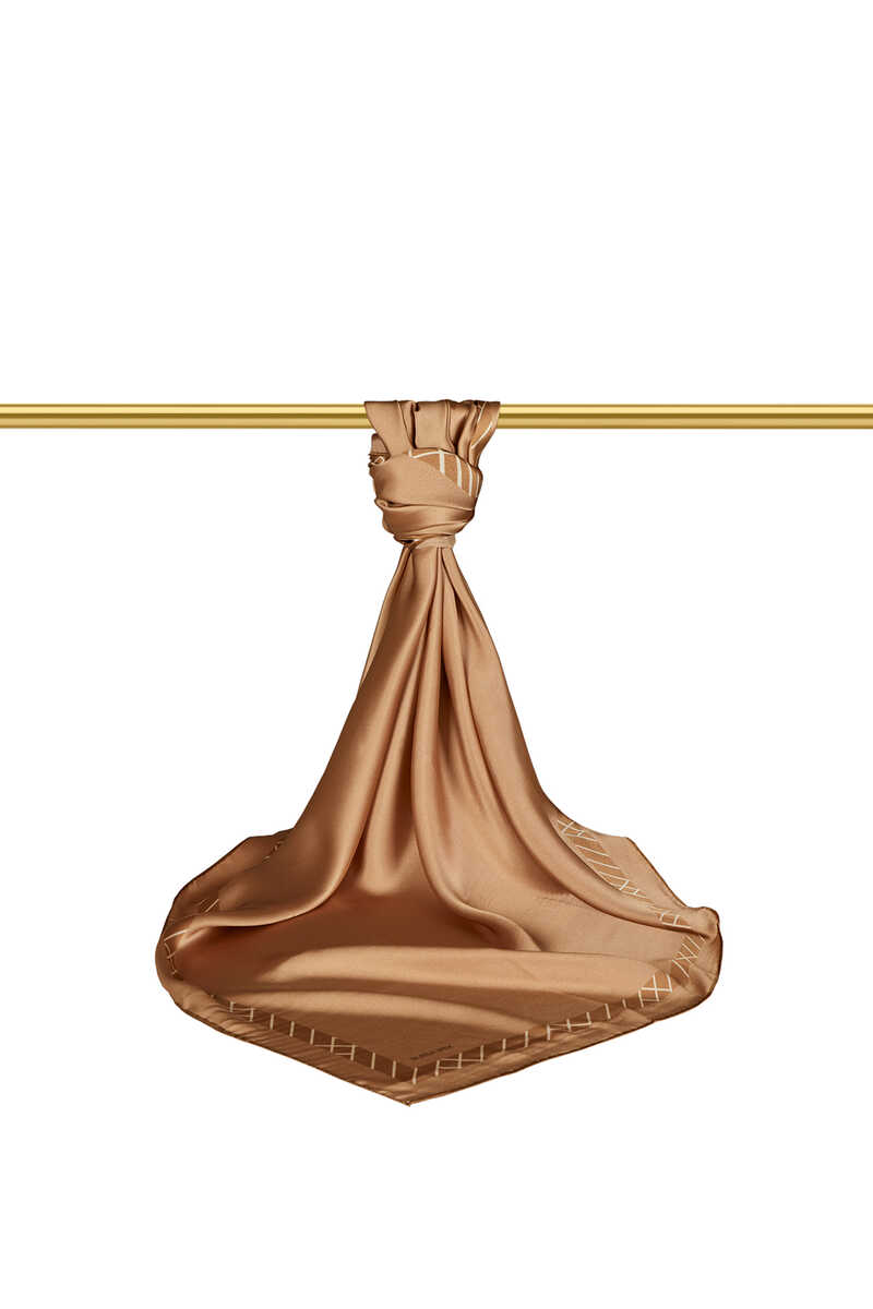 Crowning your plain and simple look, the silk Square Scarf with an upright and full stance in Milk Brown color with a Watery Edge Line pattern appeals to all seasons with its wide color range in its design that is far from all details and symbolizes the emphasis of simplicity. It offers comfort of use with its 100% Silk content and 90x90cm dimensions.