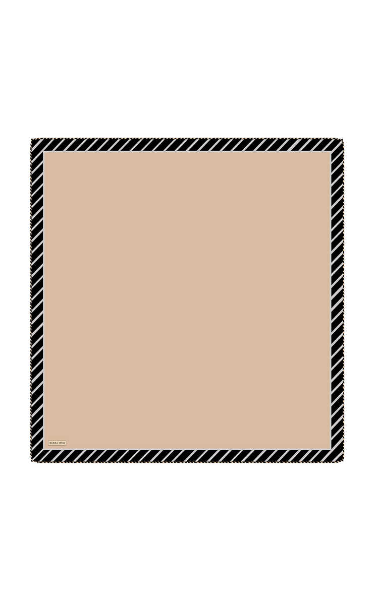 Crowning your plain and simple appearance, the upright and solid Milky Coffee colored silk Square Scarf with Watery Stripe pattern on the Edge appeals to every season with its wide color range in its design that symbolizes the emphasis of simplicity, far from all details. Our product; It offers ease of use with its 100% Twill Silk content and 90 x 90cm dimensions.