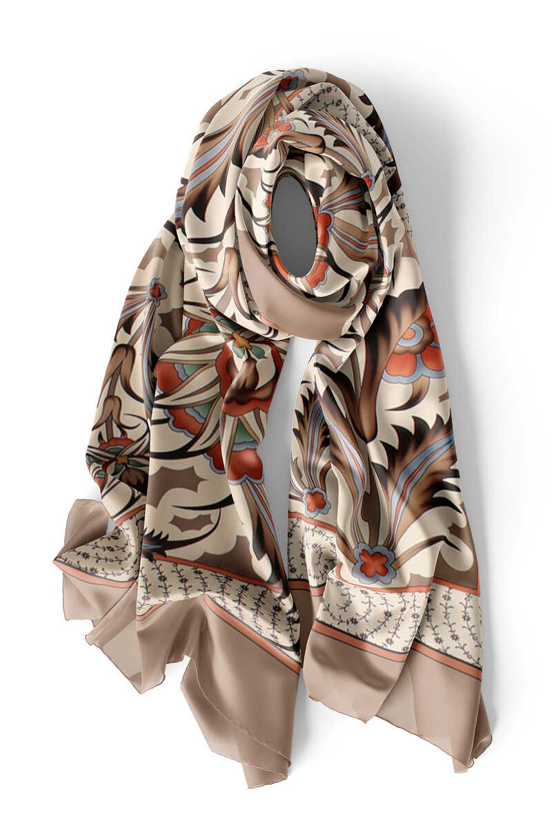 A special model that will complement your style, from the most serious business meeting to the most elegant art gallery, while adding elegance to your elegance. Our mink colored Golden Horn Pattern Silk Foulard model with eye-catching patterns offers ease of use with its 100% silk content and 55x160cm dimensions.