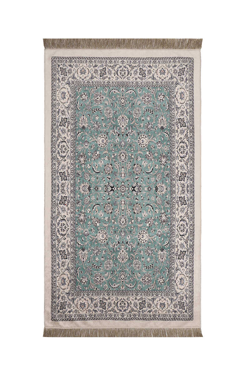 While our prayer rug models with Turkish motifs and tile patterns offer a decorative appearance with their silky texture and eye-catching colors, their velvet texture is specially designed for your comfortable use with 65x115cm dimensions.