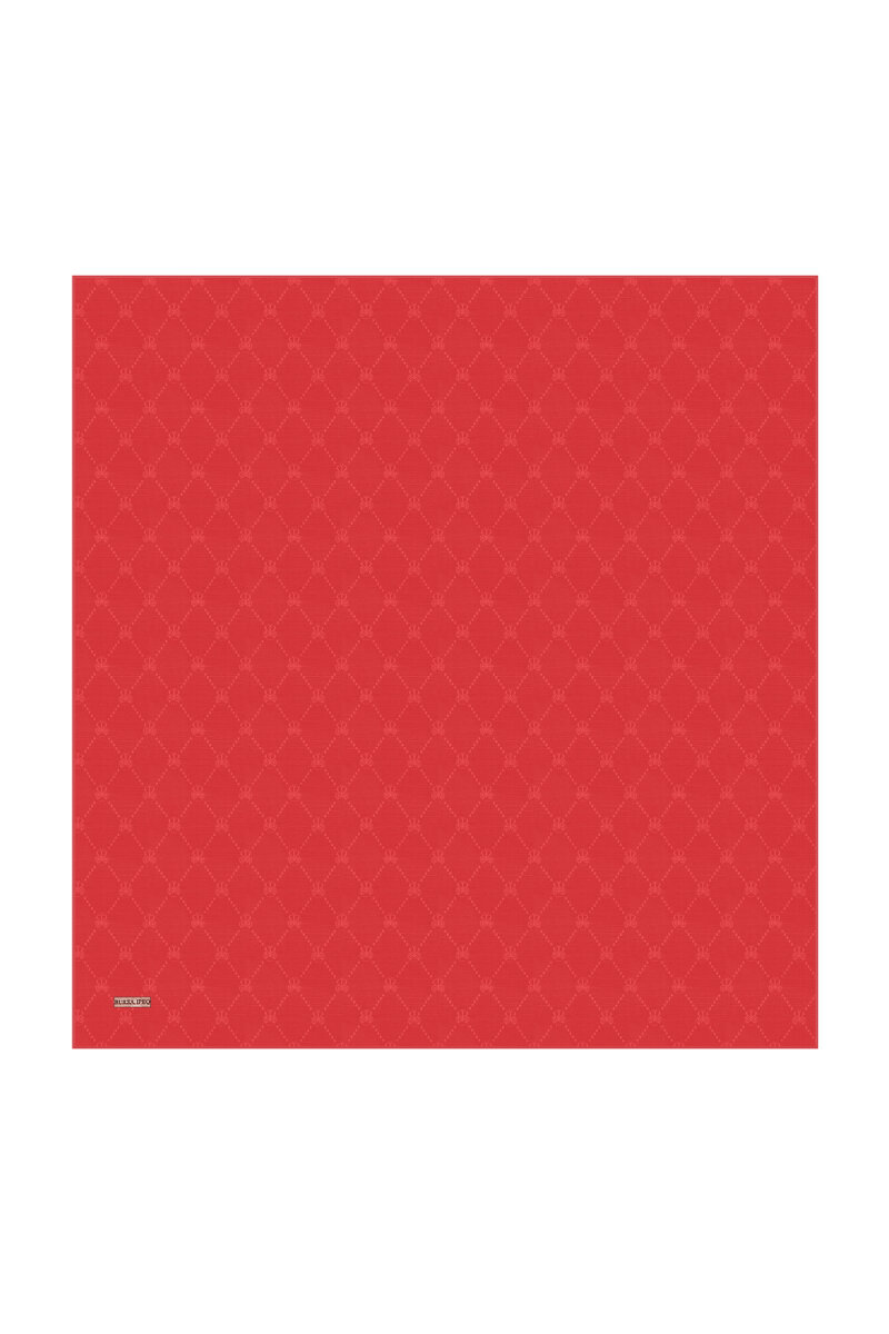 Kırmızı Monogram Desen İpek Pamuk Eşarp