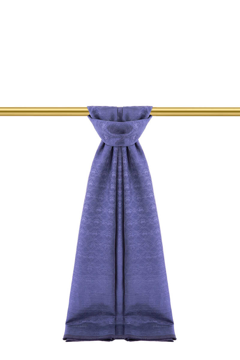 İndigo Monogram Desen İpek Pamuk Şal