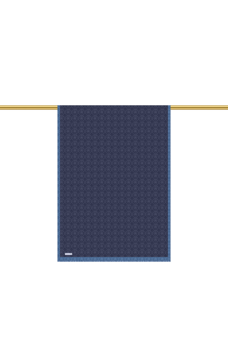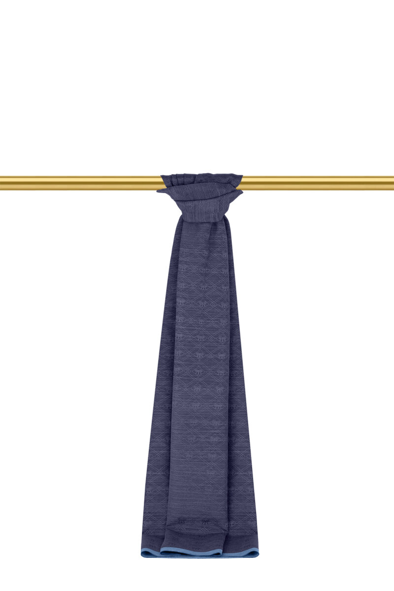 شال حرير قطني بنقشة أحادية اللون باللون الأزرق الداكن