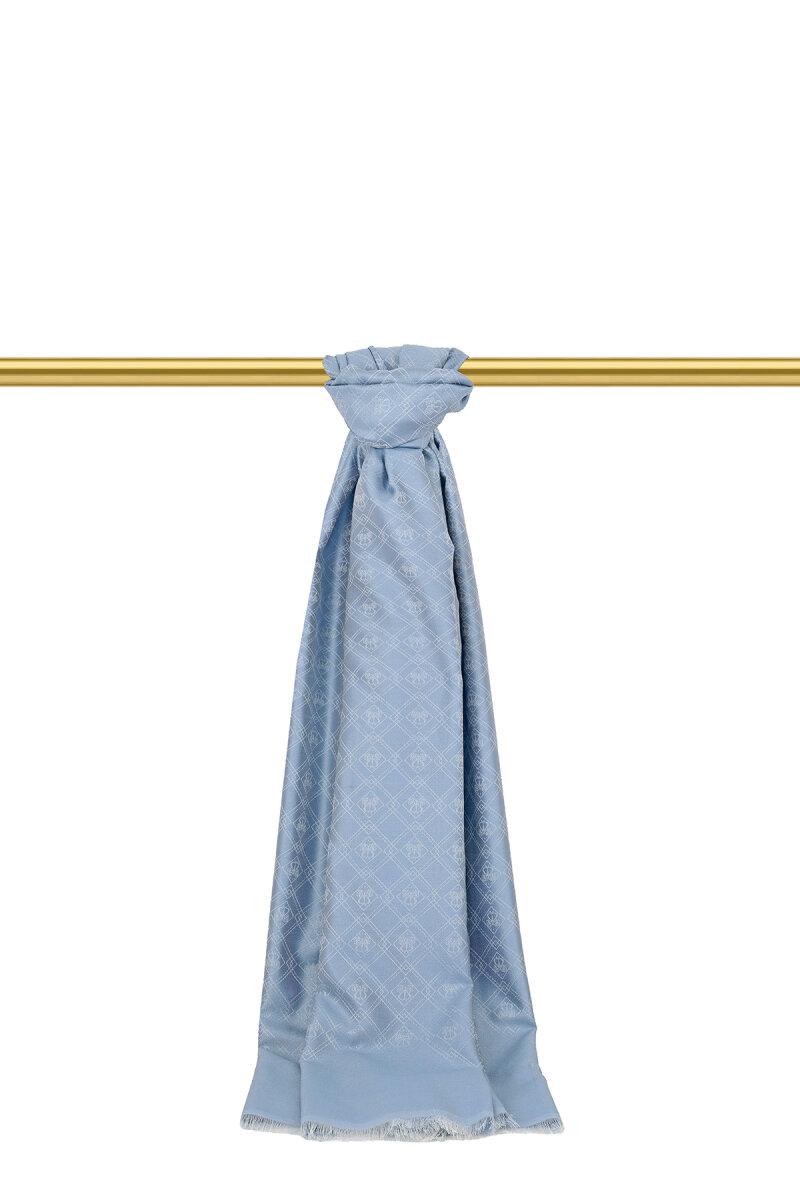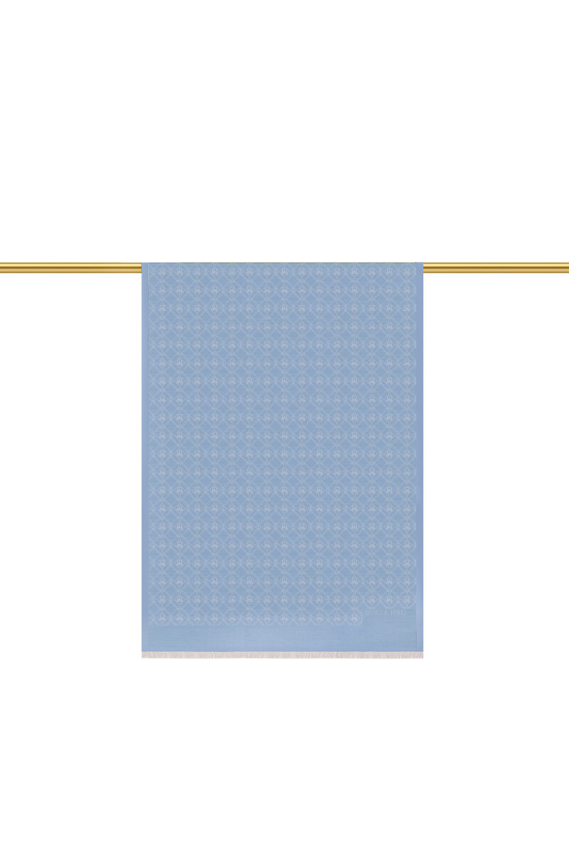 Buz Mavi Monogram Desen Jakarlı İpek Şal
