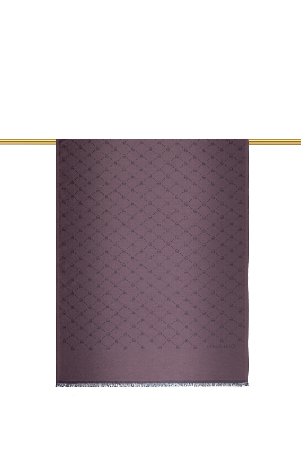 Koyu Gül Kurusu Monogram Desen Jakarlı İpek Şal