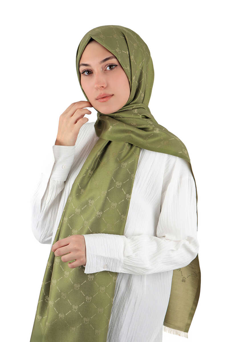 Green Monogram Pattern Jacquard Silk Scarf