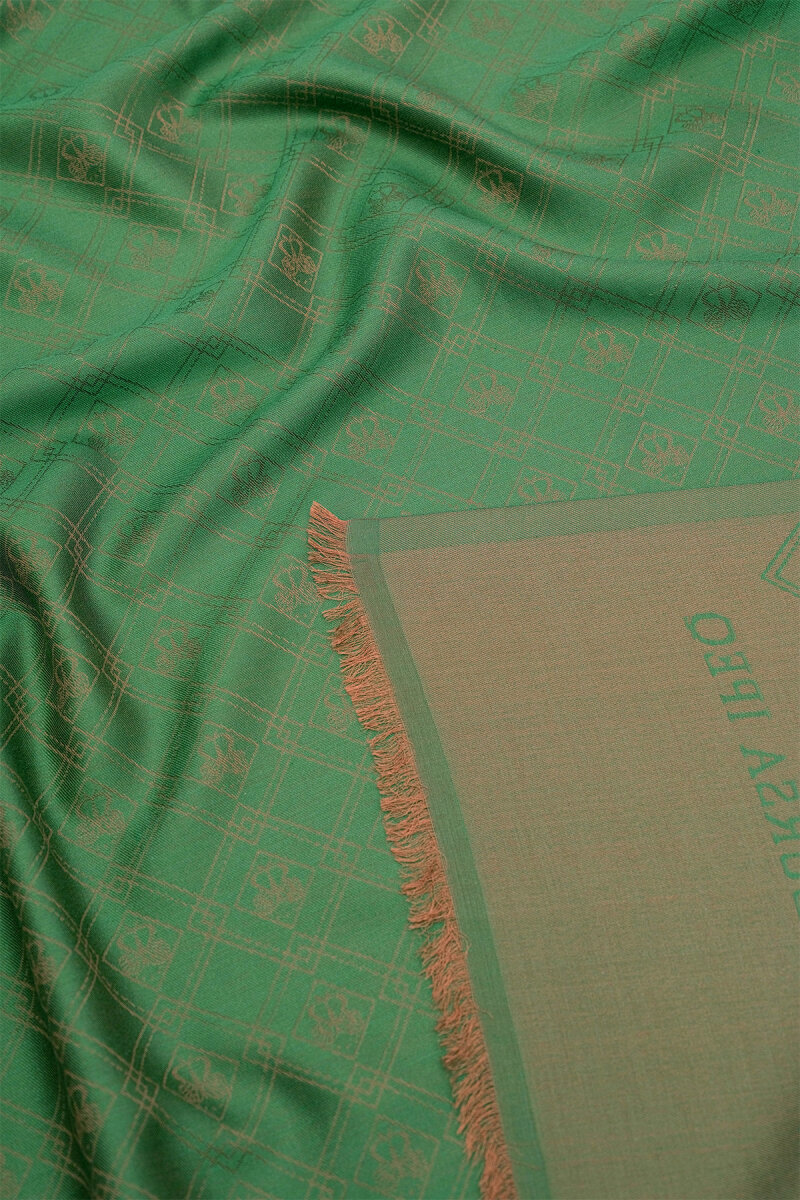 Yeşil Monogram Desen Jakarlı İpek Şal