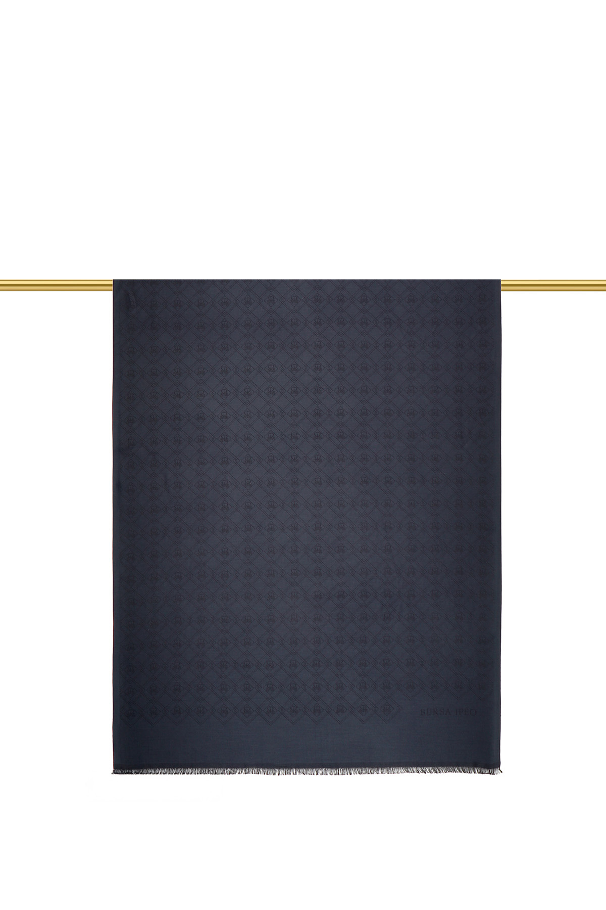 Navy Blue Monogram Pattern Jacquard Silk Shawl
