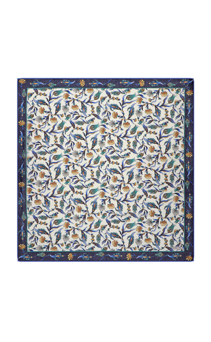 Navy Blue Carnation Tulip Pattern Soft Square Scarf