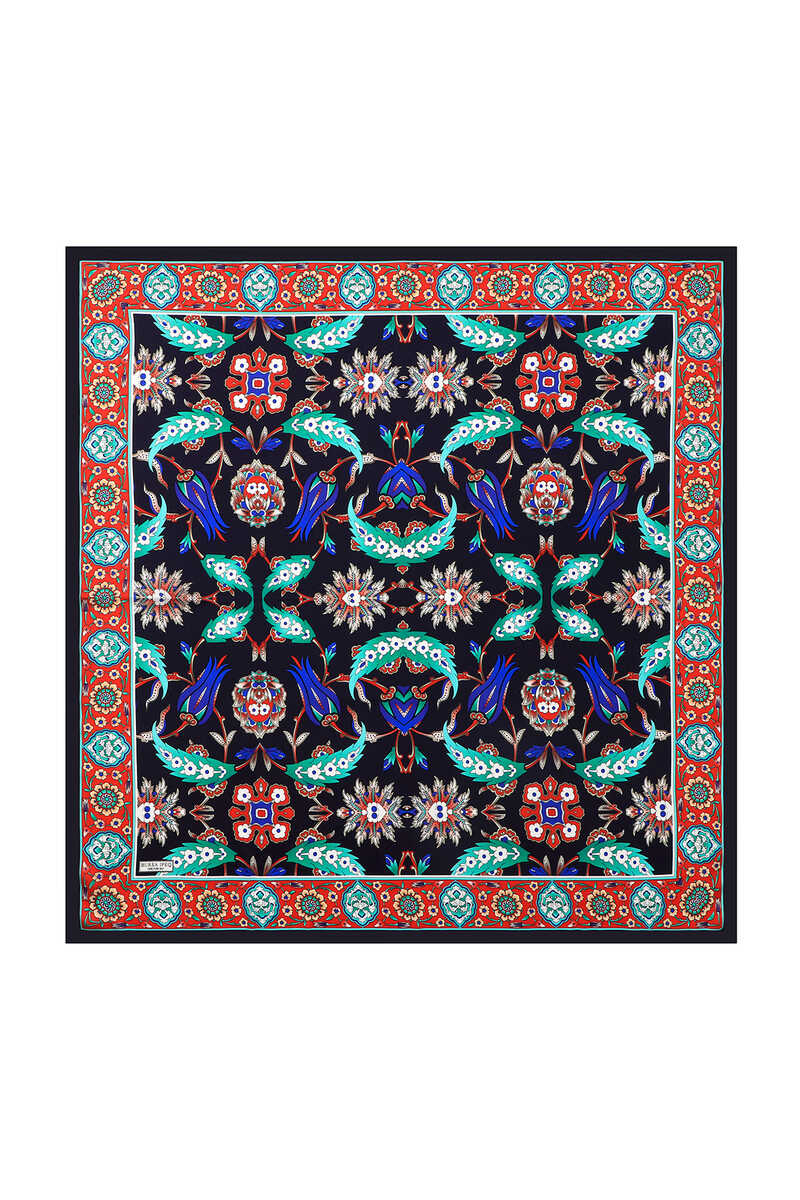 You will feel the atmosphere of integrity in different beauty with the Dark Blue Red Ephesus Pattern Sura Silk Square Scarf, reflected in the unique elegance of silk. Our product; It offers ease of use with its 100% silk content and dimensions of 90x90cm.