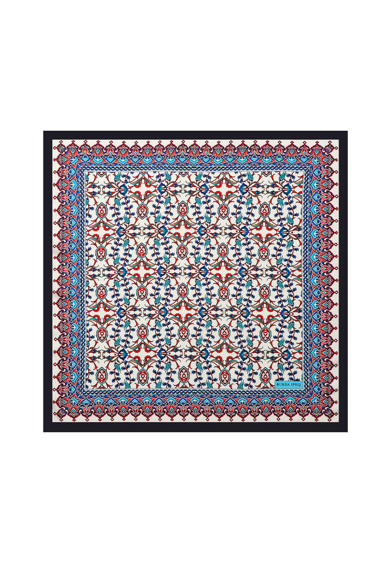 The Navy Blue Tile Tulip pattern silky Pocket Square, which timelessly accompanies your classic and sports style, adds value to you in the glittering world of fashion. Our product; It offers ease of use with its silky rayon content, hand-rolled stitching and 55x55cm dimensions.