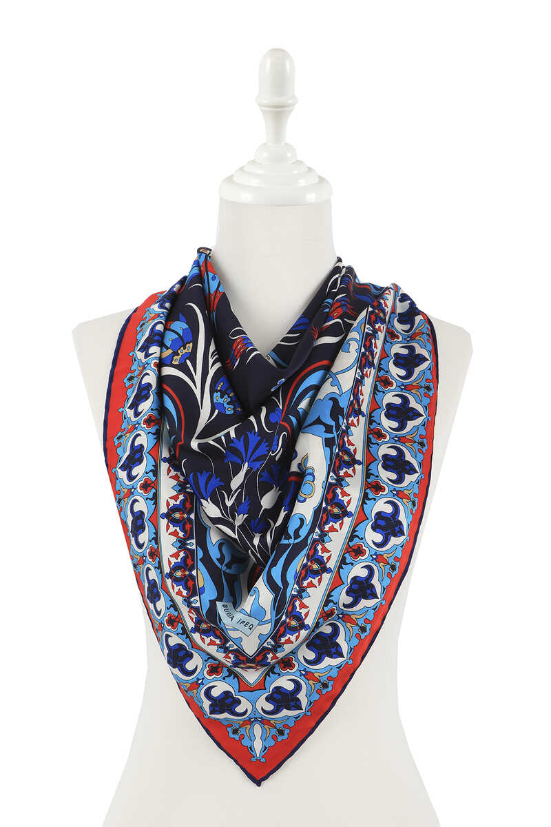 Navy Blue Turkish Pattern Cintemani Carnation Pattern Silky Square Scarf