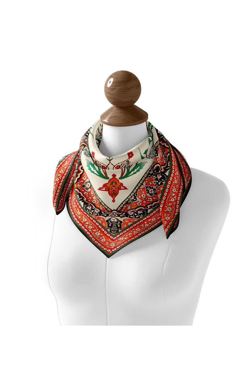 Orange Black Candlestick Tulip pattern combined with silk fabric texture and bright and lively colors is a fun and at the same time classic choice… Add energy to life with the flowers as they are wrapped in silk! Our product: 100% Silk fabric offers ease of use with its dimensions of 90x90cm.