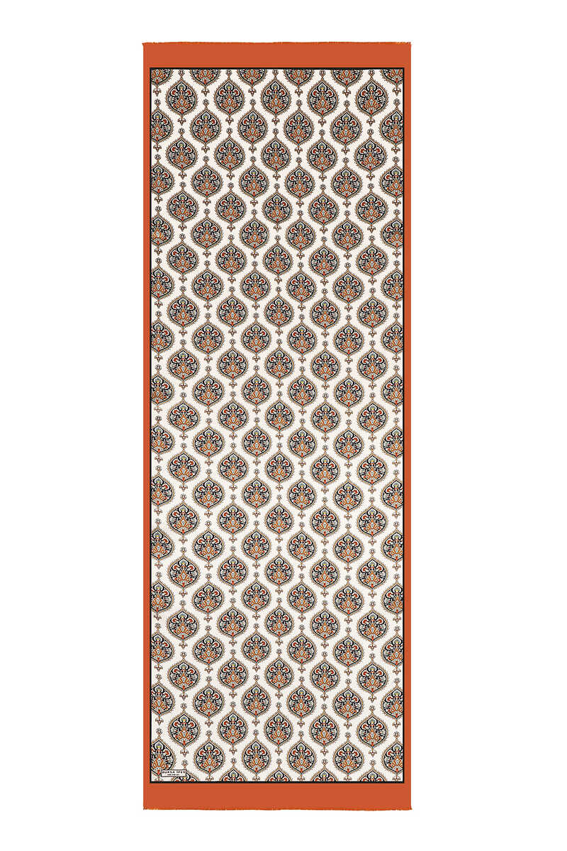 special model that will add elegance to your style and complement your style from the most serious business meeting to the most elegant art gallery. Our Orange colored Hatai Pattern Silk Foulard model with eye-catching patterns offers ease of use with its 100% silk content and 55x160cm dimensions.