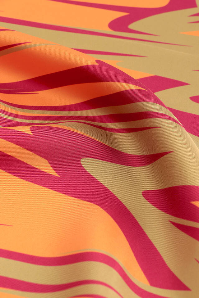 Orange Nilsu Pattern Twill Silk Square Scarf