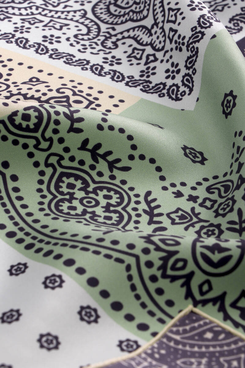 Modern patchwork desenleri, farklı renk ve desenlerin uyumlu birleşimiyle her tarza hitap eder ve kombininize sofistike bir dokunuş katar. Twill dokuma tekniği ile üretilmiş olan bu eşarp, dayanıklı ve uzun ömürlüdür. Şıklığı, zarafeti ve fonksiyonelliği bir arada arayanlar için ideal bir tercihtir. Ürünümüz %100 Twill ipek içeriği ve 90 x 90 cm boyutları ile kullanım kolaylığı sunmaktadır.