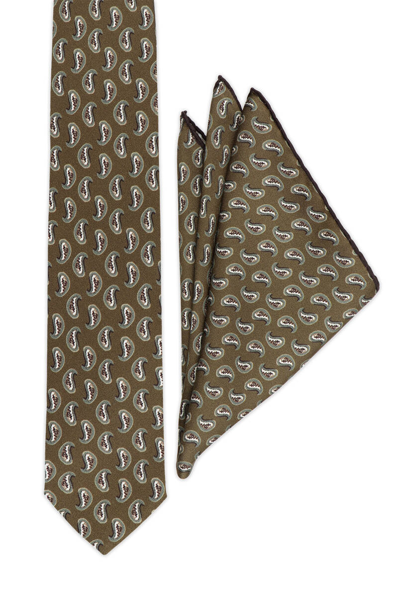 Khaki Patterned Silk Tie Set