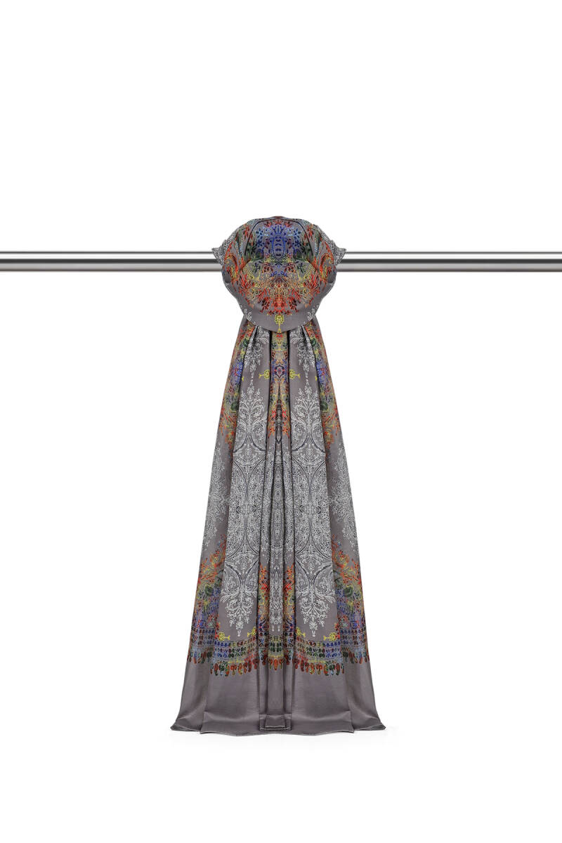 Combining elegance and chic, the Gray Ethnic Pattern Shawl is an accessory that will complete your style in every season. Its soft texture and lightweight design make this shawl a perfect complement to your outfits for everyday wear and special occasions. Its viscose fabric, measuring 75 x 190 cm, ensures ease of use.