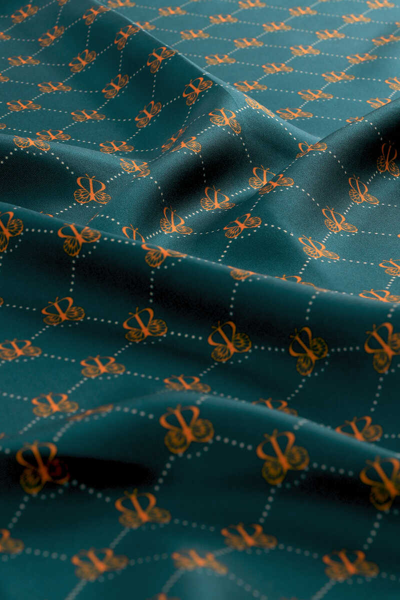 İpeğin eşsiz zarafetine yansıtılmış Petrol Yeşil Kelebek Monogram Twill İpek Eşarp ile sizler de farklı güzellikteki bütünlüğün atmosferini hissedeceksiniz. Ürünümüz; %100 İpek içeriği ile 90x90cm boyutlarıyla kullanım rahatlığı sunuyor.